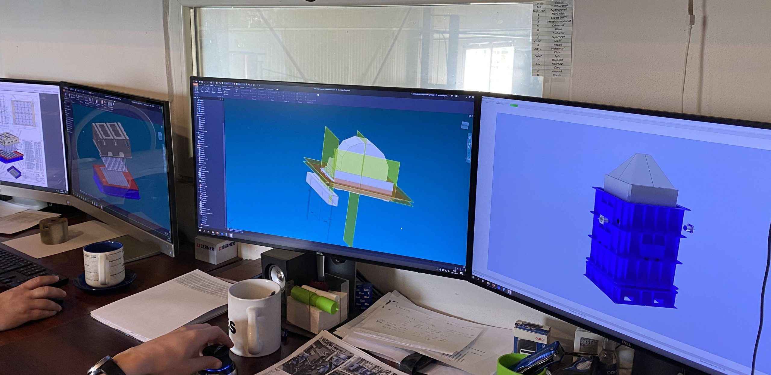 Hoci v našom archíve sú ešte stále technické výkresy kreslené ručne na pauzovacích papieroch, v dnešnej praxi využíva naše konštrukčné oddelenie najmodernejšie strojárenské softvéry. Toho času je ním AutoDesk Inventor 2021, svetovo najpredávanejšia CAD aplikácia pre strojársku 3D konštrukciu. Pri programovaní CNC strojov používame softvéry CAM a TruTops Boost. V prípade, ak je nutné vyrábanú technológiu prispôsobiť existujúcej výrobe, používame 3D laserové skenovanie priestoru metódou bezkontaktného súradnicového merania. Reálnu budovu prenesieme do 3D programu, kde môžu konštruktéri pracovať na svojich projektoch, tým sa eliminujú chyby, ktoré vznikajú pri meraniach. Realizujeme tiež rýchlu výrobu prototypov – RAPID PROTOTYPING, preto disponujeme 3D tlačiarňou.